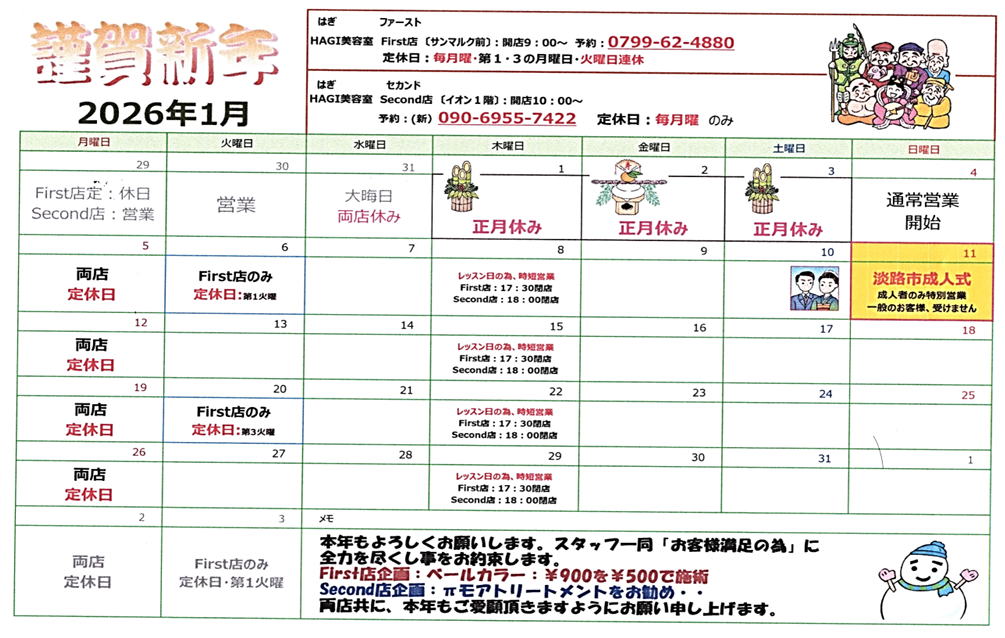 First店 定休日:毎週 月曜日/ 第1・3の火曜日休み(連休) |