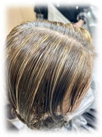 | システム | @通常のカラーの施術前に・・・ A毛先・既染部・褪色部分・損傷部分・・・ Bアシッドカラー塗布(色素の入ったトリートメント) C放置 *所要時間:5分〜25分 D通常カラーの施術 |