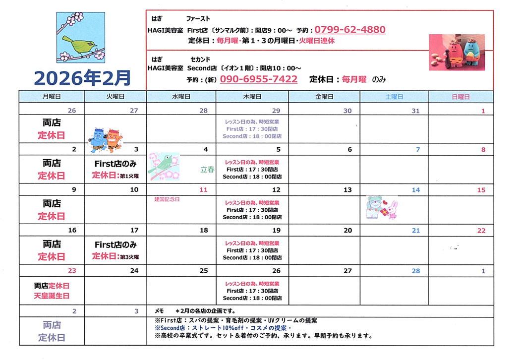 First店 定休日:毎週 月曜日/ 第1・3の火曜日休み(連休) |