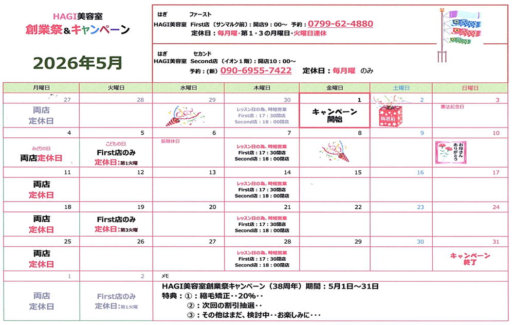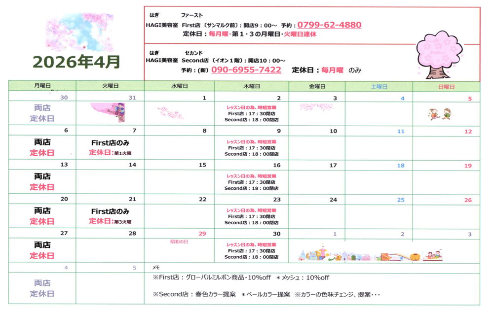HAGI(萩)美容室 First店・Second店 ホームページ